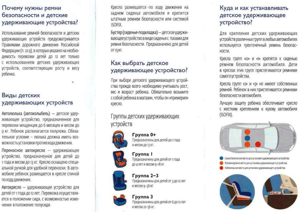 Памятки по детским удерживающим устройствам